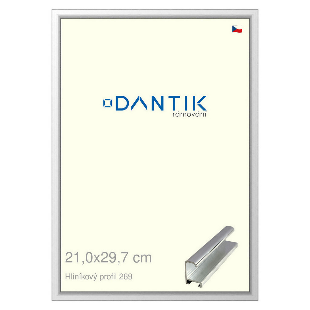 DANTIK rámeček 21x29,7 | ALU profil 7269 Stříbrná lesklá (Sklo Čiré)