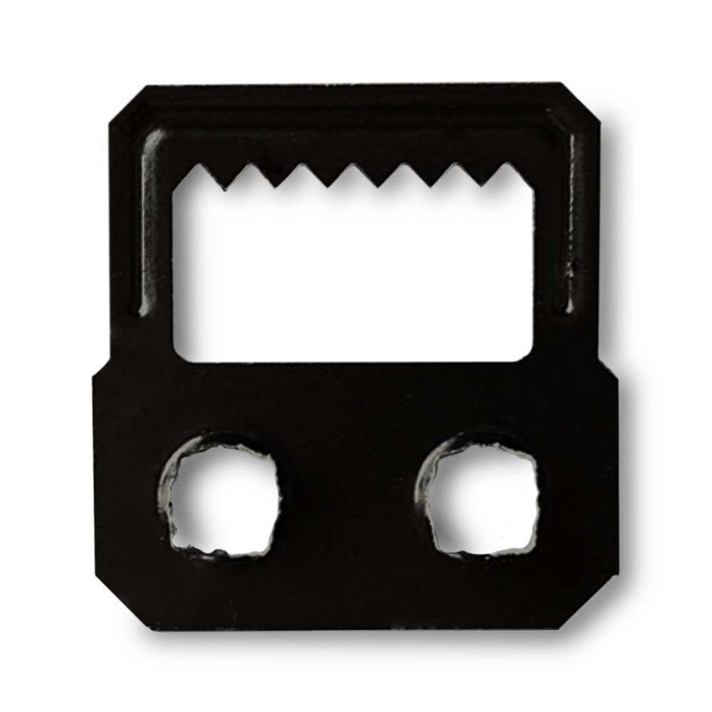 Naráží se do 2 nebo 3mm silné desky, MDF nebo kartónu tak, že nože se na druhé straně "roznýtují" Pro naražení je třeba desku, do které háček narážíme podložit ideálně ocelovou deskou a na nože udeřit rovně (například skrz nějaké druhé kladivo (přípravek))