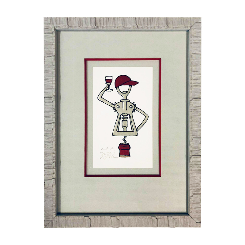 Popis obrázku: Otvírák s kšiltovkou pozvedávající číši